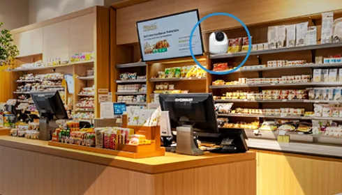 軽くてコンパクトなボディのため場所をとらず、従来のカメラと違い電源があればどこでも簡単に移動できるので、店舗のレイアウト変更に伴いカメラの位置を変えることも可能です。