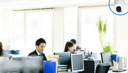 オフィス内を防犯カメラで監視。現金やパソコンの盗難を防ぎます。記録データはパワハラなどの確認にも有効です。