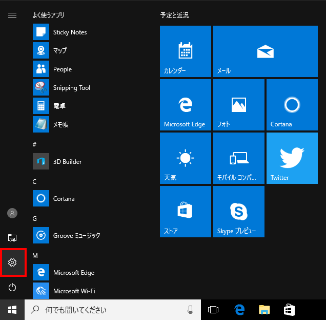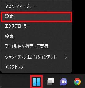 画面中央下のスタートボタンを右クリックし、【設定】をクリックしてください。