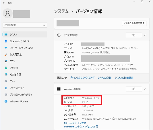 プロセッサー(CPU) | 1GHz以上で2コア以上の64ビット互換プロセッサーまたはSystem on a Chip(SoC)。Intel:第8世代以降、AMD:Zen2以降 |